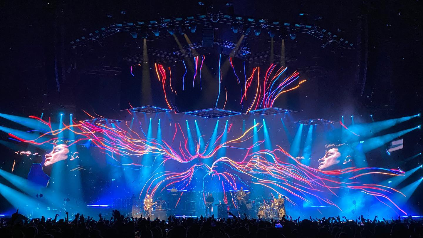 這次演唱會(huì)的的設(shè)計(jì)創(chuàng)意靈感來自于過去的專輯巡回演唱會(huì),每首歌曲的燈光效果都以外形和內(nèi)容為特色,創(chuàng)造出驚艷的視覺效果。在舞臺(tái)設(shè)計(jì)上依據(jù)觀眾視線角度進(jìn)行設(shè)計(jì),確保每個(gè)角落的觀眾都能感受同樣令人驚嘆的視覺內(nèi)容。 為此設(shè)計(jì)了五個(gè)懸浮的三米視頻立方體,光束效果從內(nèi)部照出,結(jié)合舞臺(tái)10米x9米的LED墻來打造巨幕電影版的視覺沖擊力。 Avolites Synergy 功能與Notch效果結(jié)合使用,渲染出震撼的視頻效果。
